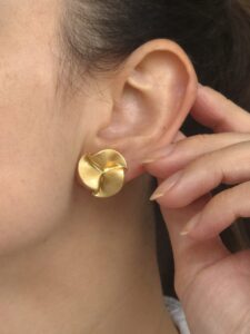 Uma joia que celebra a beleza do movimento e das formas naturais. Com design orgânico e escultural, este brinco em banho de ouro 18k traz curvas suaves e entrelaçadas que criam um efeito contemporâneo, elegante e cheio de personalidade.