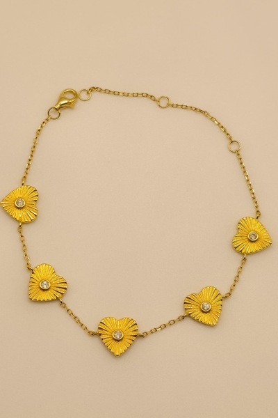 Pulseira Corações em Prata 925 com Banho de Ouro 18K e Zircônias