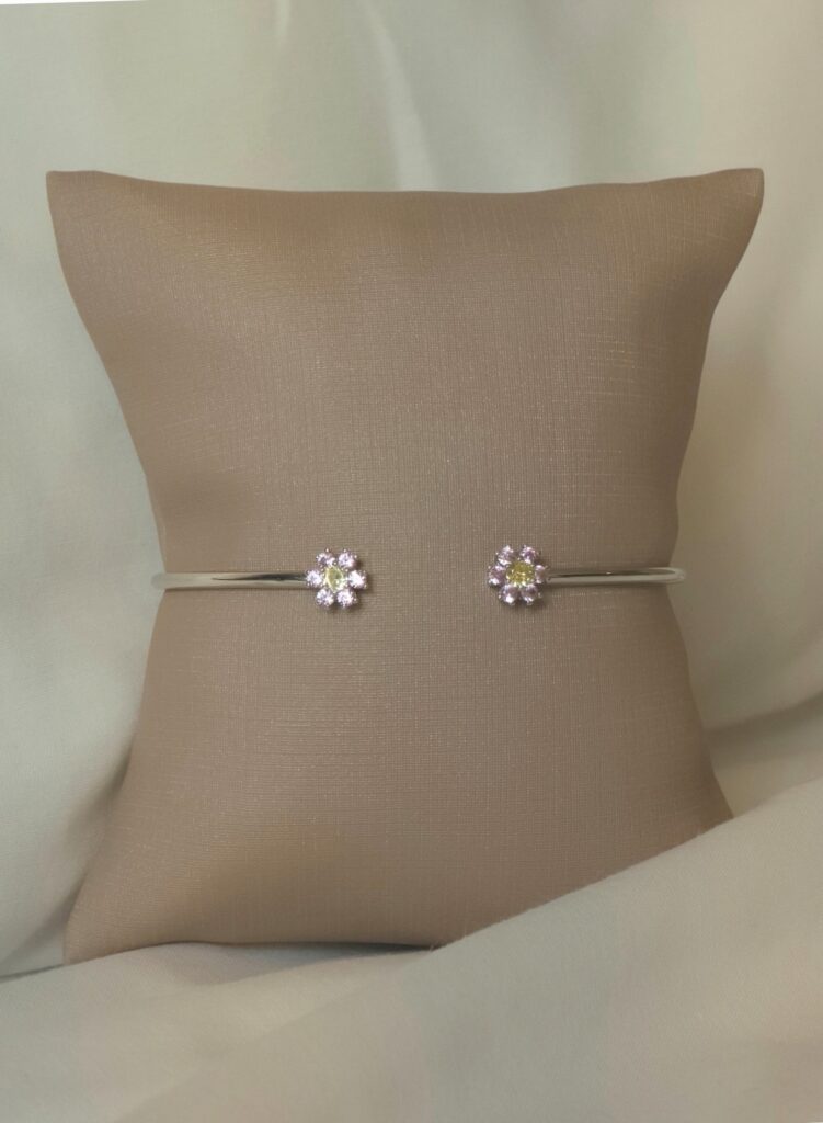 Bracelete flor miolo amarelo e pétalas cristal prata925