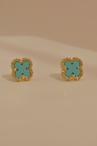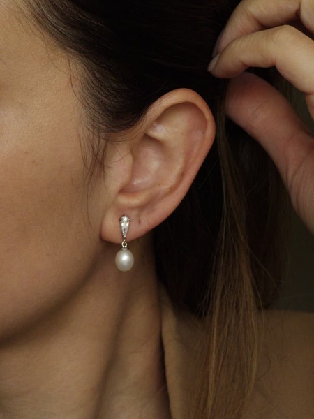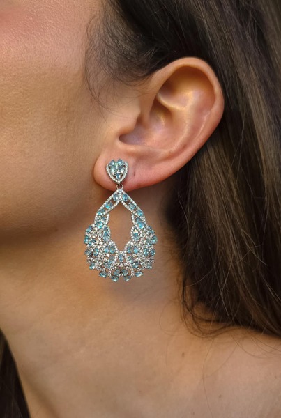 Brinco em Ródio Branco com Zircônias Cristal e Água-Marinha