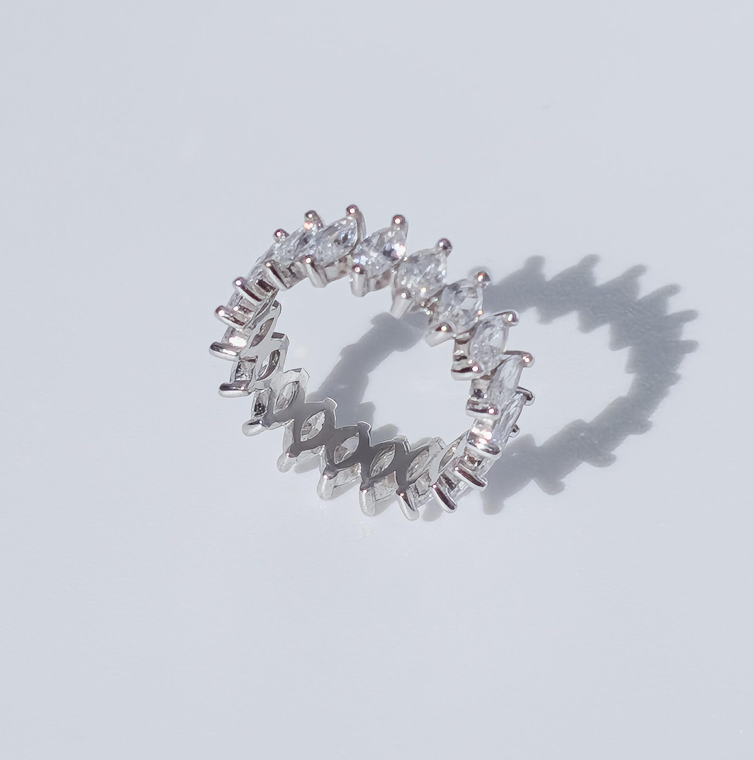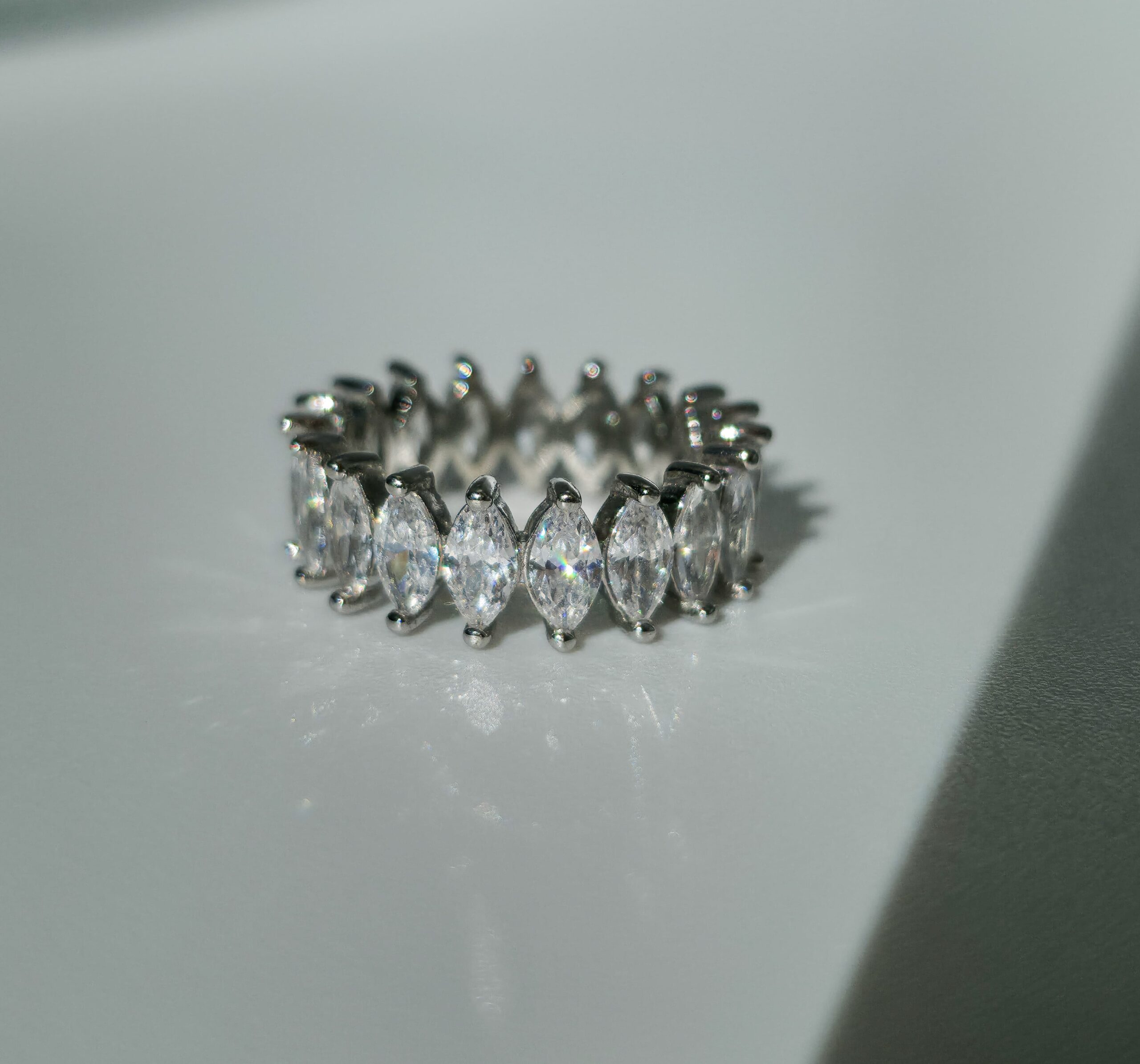 Anel Navete rígida em prata 925 + zircônias premium.