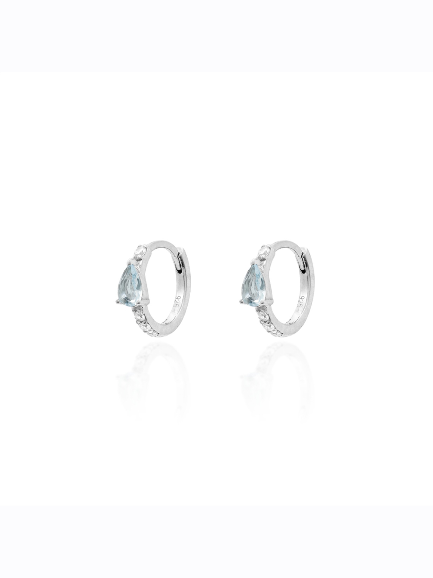 Argola Pequena em Prata 925 com Zircônias Cristal e Gota de Água-Marinha