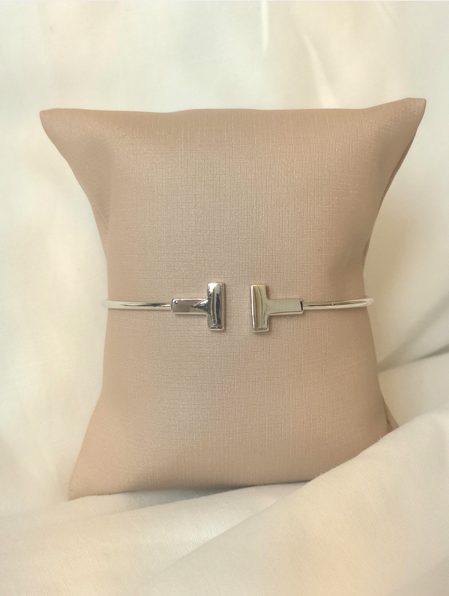 Este bracelete em Prata 925 traz um design minimalista com extremidades geométricas espelhadas, criando uma estética moderna, clean e sofisticada. Seu acabamento polido revela a beleza pura da prata, refletindo luz com suavidade e delicadeza.