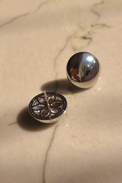 Brinco Botão em Semi Joia com Banho de Ródio Branco – 3 cm