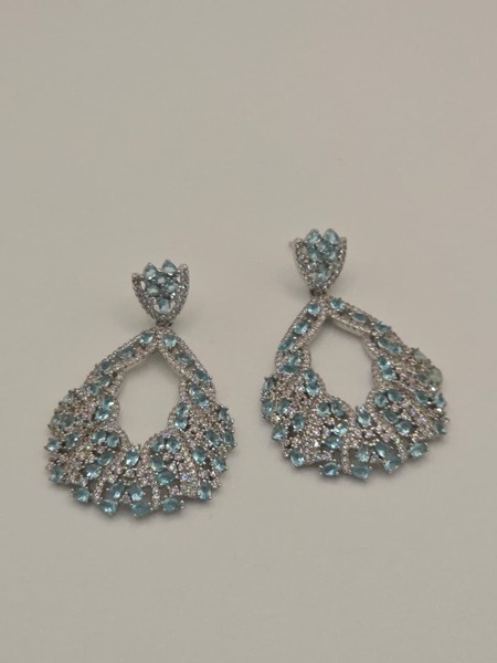 Brinco em Ródio Branco com Zircônias Cristal e Água-Marinha