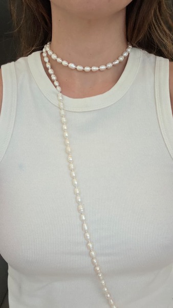 Um colar que transmite sofisticação e delicadeza atemporal. Confeccionado com pérolas naturais, cada uma com seu brilho único e formato orgânico, ele carrega a essência da elegância clássica em uma peça versátil e cheia de charme.